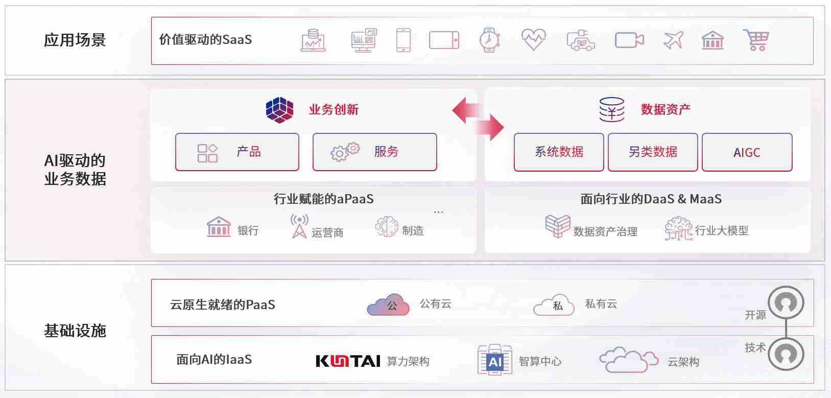 数字时代,,,围绕企业数字化转型的关键要素,,,公海gh555000aa线路检测数码开创性的提出数云融合战略和技术体系框架,,,着力在云原生、、、数字原生、、AI原生和信创产业上架构产品和服务能力,,,,为处在不同数字化转型阶段的快消零售、、汽车、、、、金融、、、医疗、、、政企、、、教育、、、运营商等行业客户提供泛在的敏捷IT能力和融合的数据驱动能力,,,,构建跨界融合创新的数字业务场景和新业务模式,,,助力企业级客户建立面向未来的核心能力和竞争优势,,全面推动社会的数字化、、、、智能化转型升级。。。